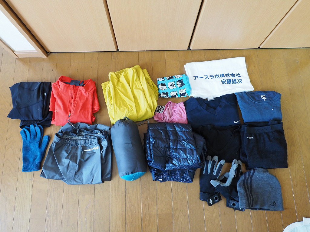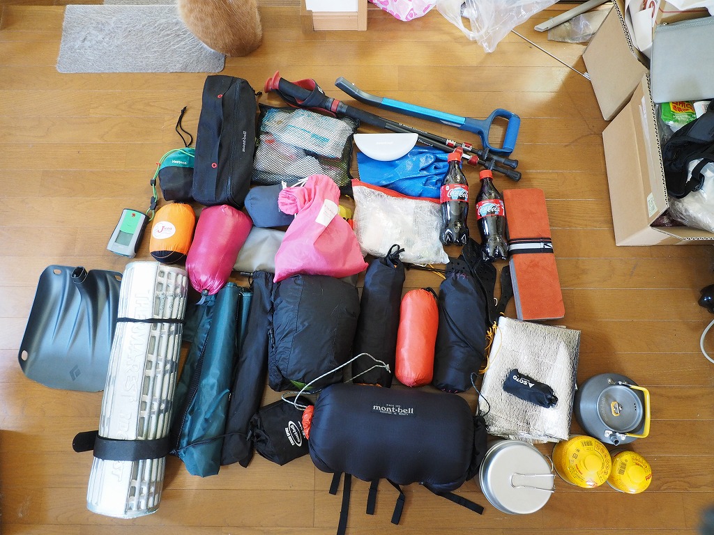 テント、寝袋等、主要装備
