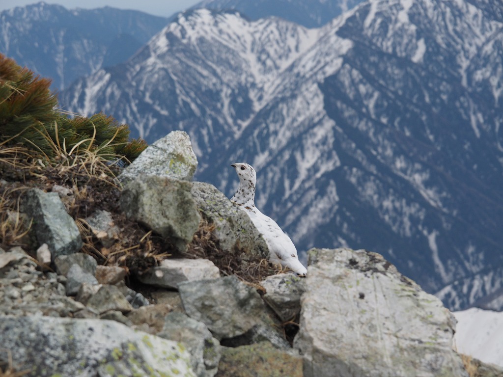 途中の岩場で雷鳥発見